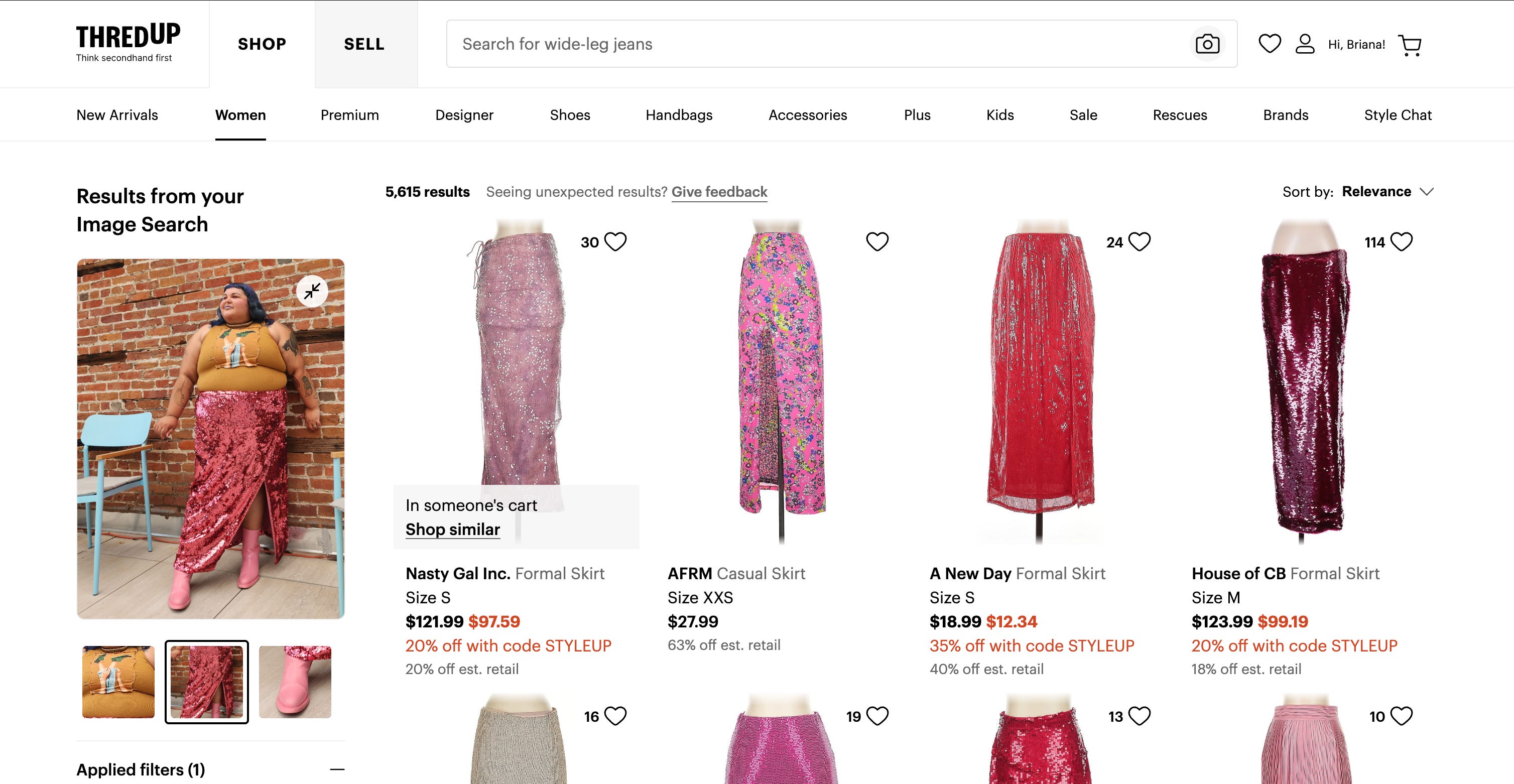 Like this look? Upload one of the photos into our Image Search and we’ll pair you with similar styles you can feel good about keeping out of landfills.